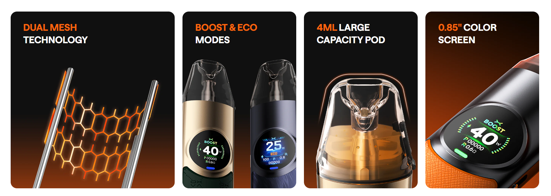At the heart of the OXVA Nexlim is its Dual Mesh Technology, a breakthrough that doubles flavor intensity and coil longevity. In Boost Mode, dual meshes work to heat e-liquid evenly, amplifying taste by 200%. Switch to Eco Mode, and the coils alternate to reduce wear, extending lifespan to 15+ refills—ideal for all-day vapers.