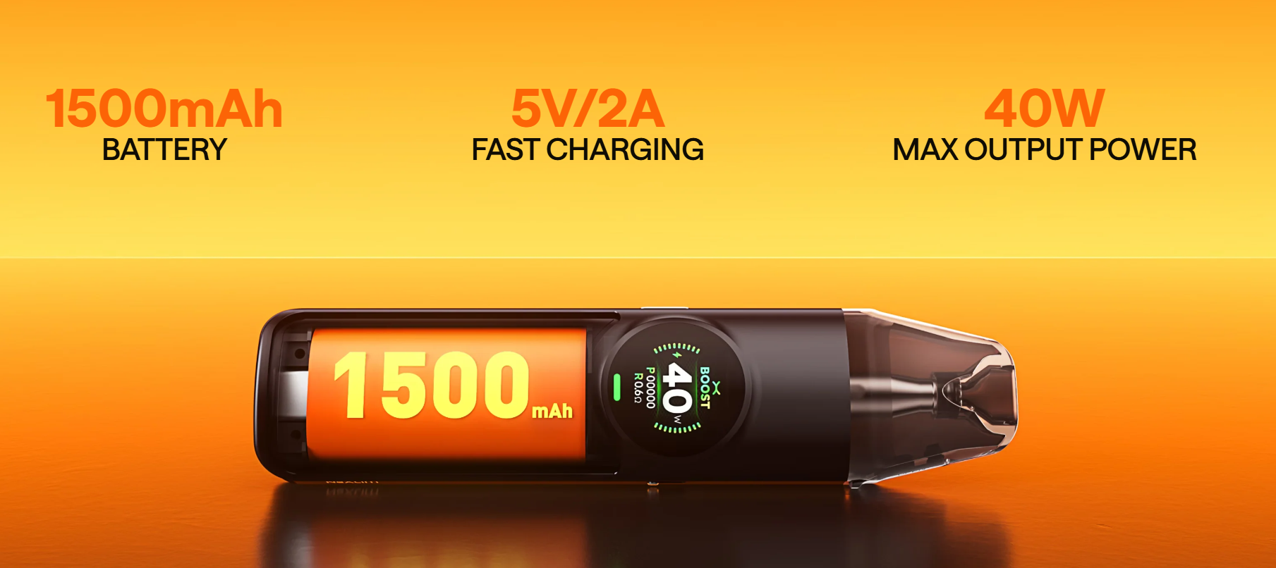 Battery anxiety? Not here. The 1500mAh cell pairs with 5V/2A fast charging, ensuring quick top-ups and up to 40W of consistent output. Plus, the Nexlim adapts to older XLIM pods with an included adapter, making upgrades seamless for existing users.