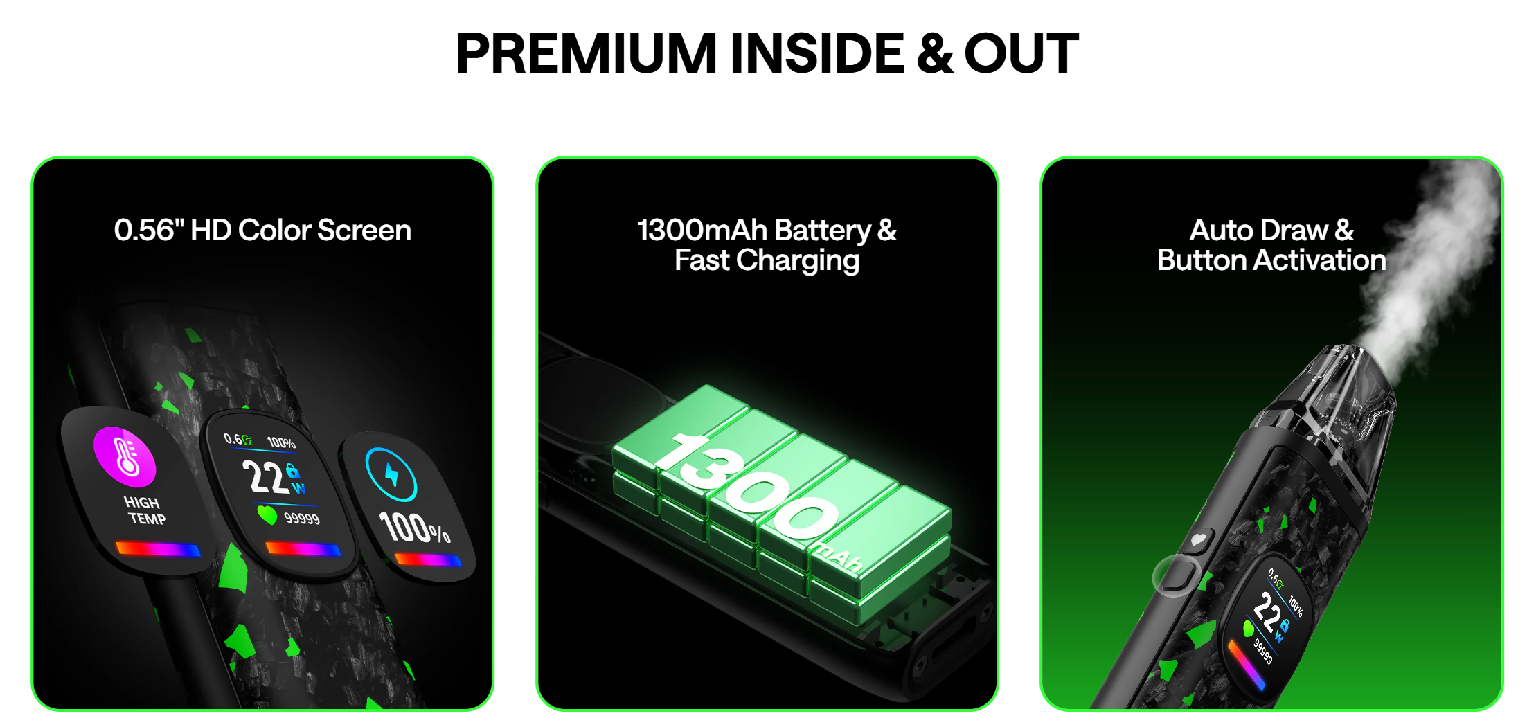 The OXVA XLIM PRO 3 edges ahead with its 1500mAh battery and 5V/2A fast charging, hitting 80% in just 30 minutes. OXVA claims up to 5 days of use on a full charge. The DNA’s 1300mAh is still respectable with fast charging, but the PRO 3 simply lasts longer between charges.