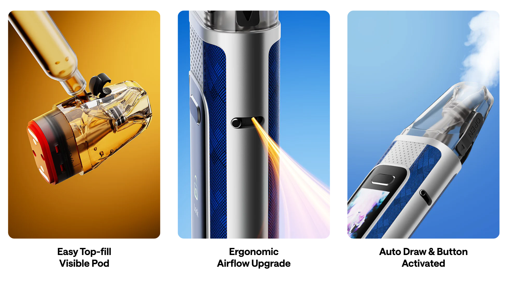 - 3ml top-fill pod for longer sessions