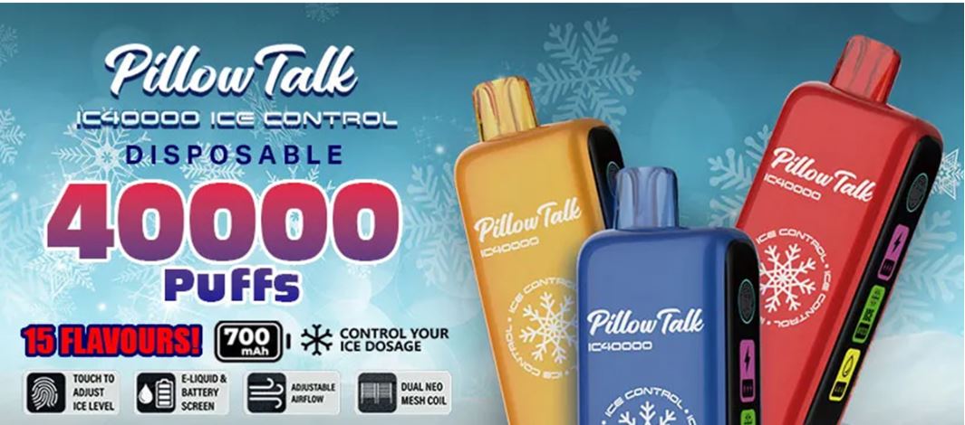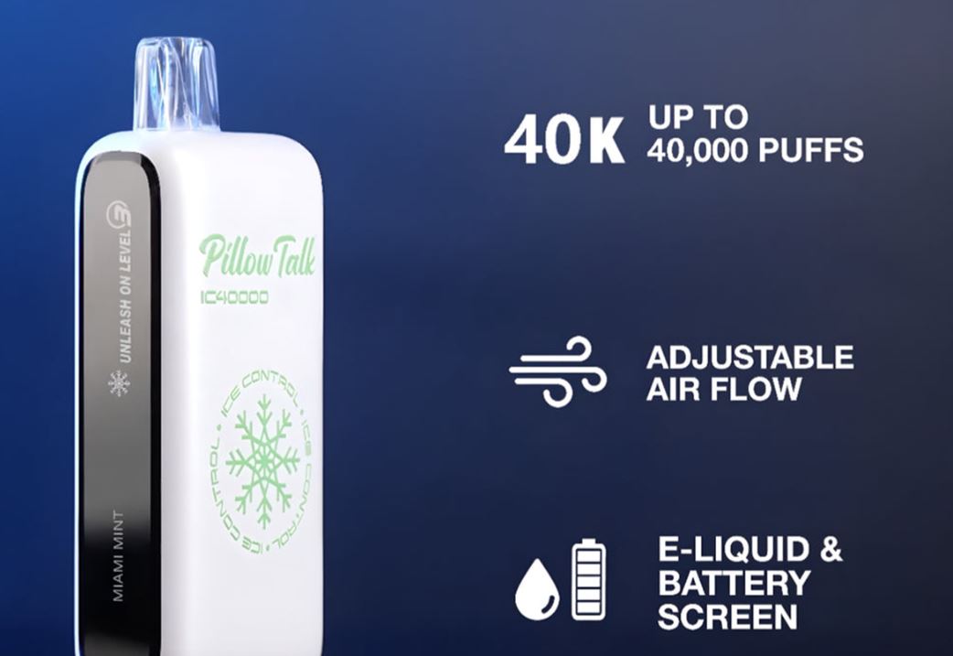 Pillow Talk IC40000 is primary expendable vape on the planet that permits vapers to control the ice level. Each Pillow Talk IC40K comes pre-loaded with 20 mlof mint-flavored e-juice. By double tapping the touch button on the showcase screen, you can pick the ice level from No Ice to Ice Released.
