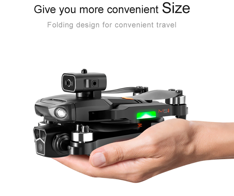 The PJC M1S showcases a thoughtful and practical design, characterized by folding arms that enhance its portability. With a compact size of 140 x 80 x 80mm when folded and 200 x 160 x 80mm when unfolded, this drone is easy to carry, making it an ideal companion for on-the-go adventures. The use of high-quality materials, including plastic, metal, and electronic components, ensures durability without compromising on weight.