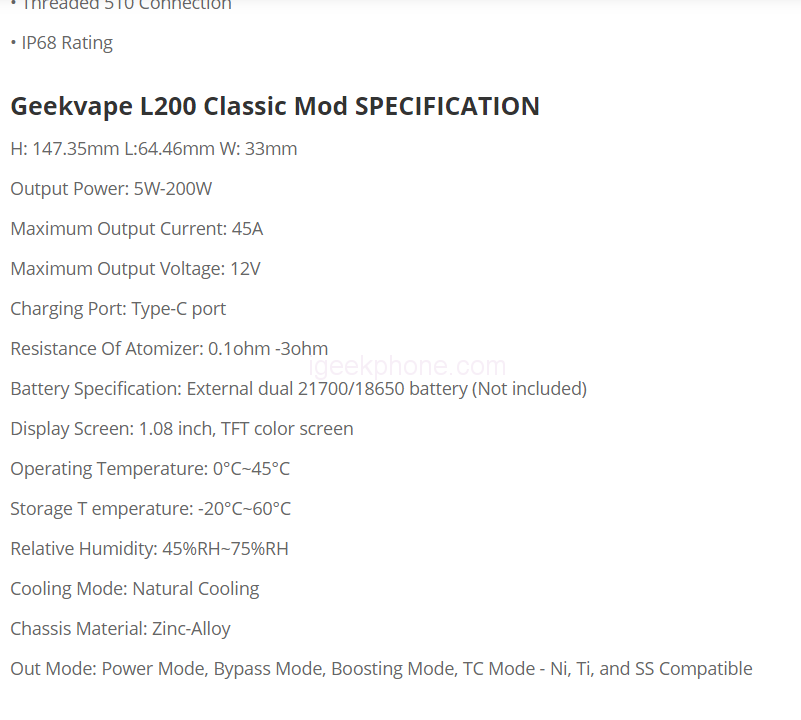 - Geekvape L200 (Aegis Legend 2) Classic Box Mod 200W