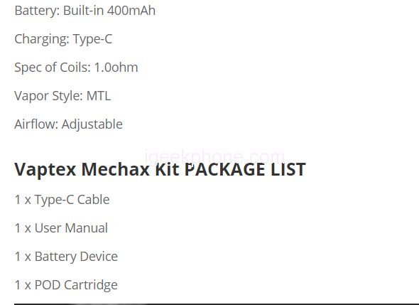 - Vaptex Mechax Pod Kit