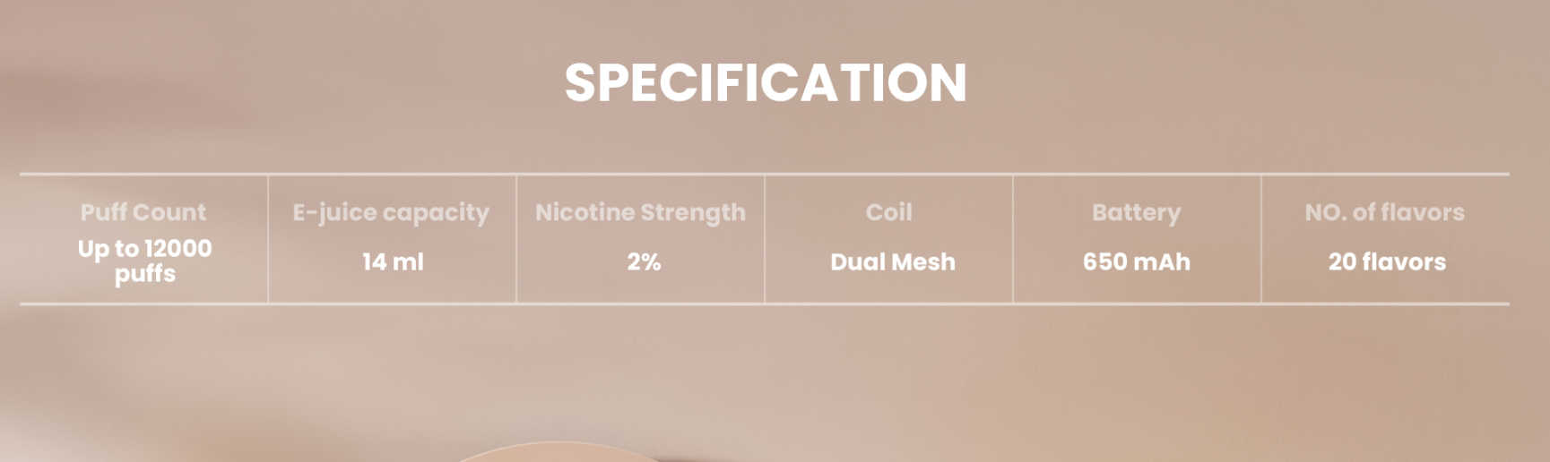 The “12,000” in its name likely refers to the puff count, suggesting that this device can deliver approximately 12,000 puffs before it’s depleted. This is a relatively high number, indicating that the device is designed for extended use over several days or even weeks, depending on the user’s vaping habits.