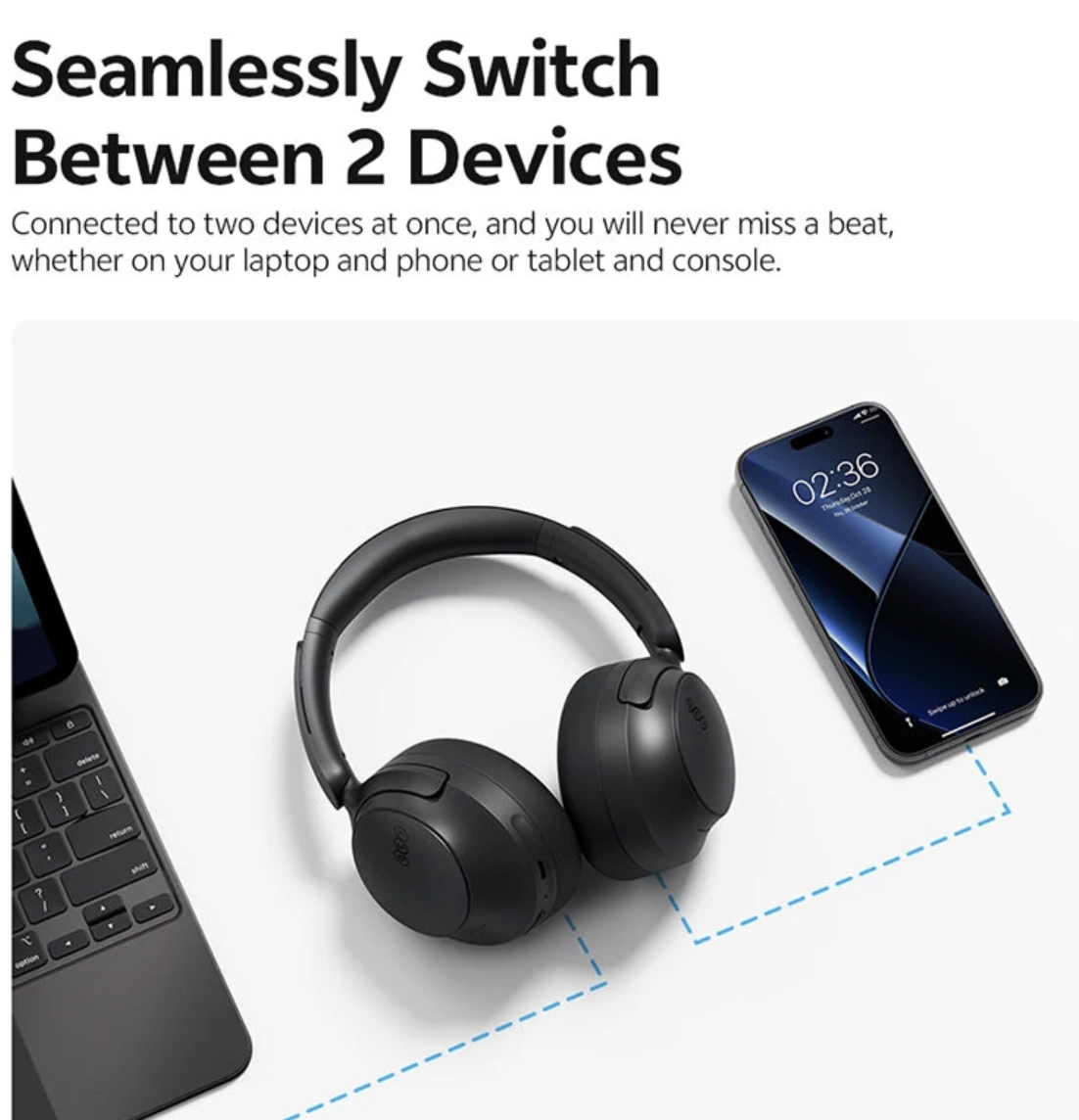 The QCY H3S ANC Headset has been designed with both style and functionality in mind. With a sleek, modern aesthetic, it can easily transition from a casual setting to a professional one. The headphones’ over-ear design offers a sporty yet sophisticated look, making them perfect for everyday wear, whether you’re out for a jog or chilling at home. Its foldable design also makes it easy to store and carry when not in use.