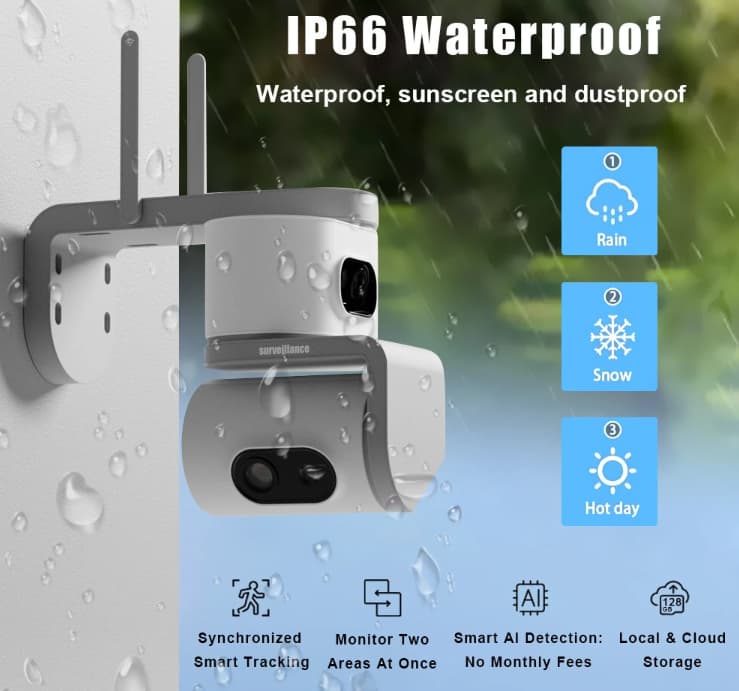 Durability and Weather Resistance: The IP66 waterproof rating ensures that the camera can handle harsh weather conditions, providing reliable outdoor surveillance year-round.