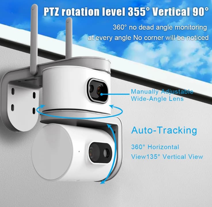 The QD01 2MP+2MP HD WiFi PTZ Camera excels in both day and night performance. During the day, the camera delivers crisp, clear HD video, capturing all the details of your property. The dual lenses provide enhanced coverage, allowing you to monitor multiple angles or zoom in on specific areas without sacrificing image quality.