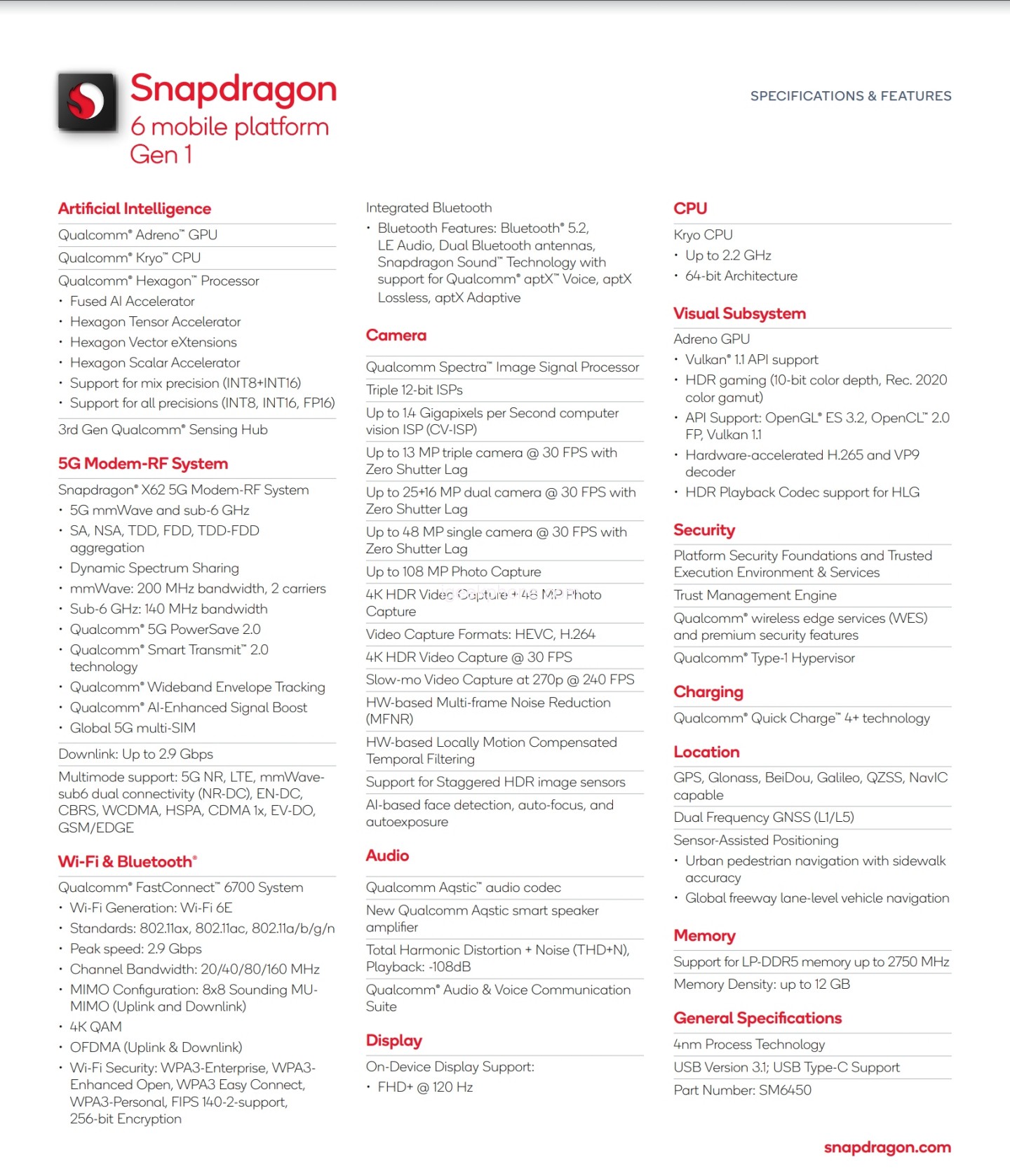 In terms of network, the chipset will use the Snapdragon X62 5G baseband, providing 5G millimeter wave and sub-6GHz frequency band support. The chip supports 120Hz refresh rate displays up to FHD+ resolution, will support Qualcomm FastConnect 6700 WiFi 6E on the WiFi side, and will also support Bluetooth 5.2.