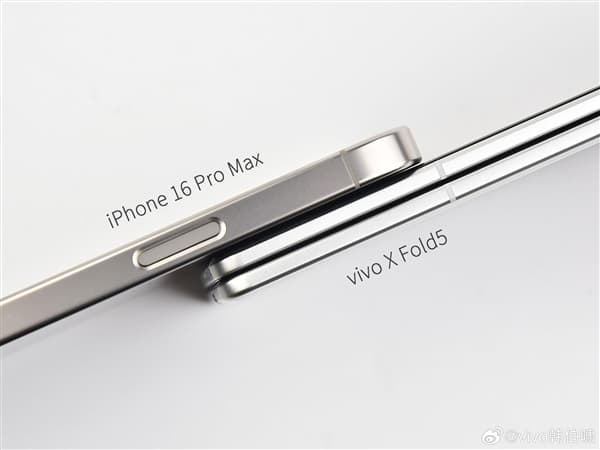 How thin can the X Fold5 be this time? We took two comparison pictures. Let’s take a look. The body thickness of the X Fold5 is very close to that of the mainstream benchmark straight-bar flagship iPhone 16 Pro Max. It is both thin and light.