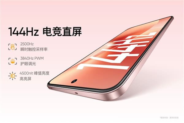 The front has been replaced with a neat 6.77-inch straight screen with a resolution of 2392*1080P, supporting a 144Hz refresh rate, a 2500Hz instantaneous touch sampling rate, 3840Hz PWM eye-protecting dimming, a peak brightness of 4500nit, and screen fingerprint recognition.