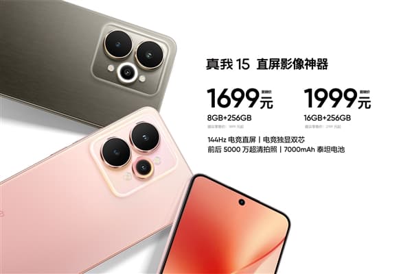 In terms of price, the Realme 15 offers two options: the 8+256GB version is priced at 1,699 yuan and the 16+256GB version at 1,999 yuan.