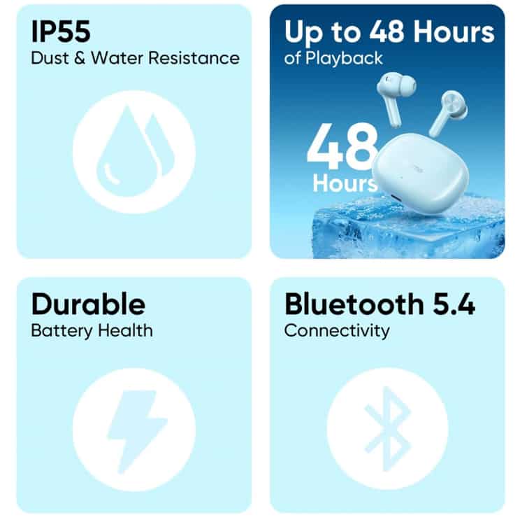 The headline feature is undoubtedly the massive 12.4mm Dynamic Bass Drivers. Realme emphasizes “Booming Bass,” and larger drivers typically translate to richer, deeper, and more powerful low-end response. This promises an immersive audio experience, especially for genres like hip-hop, EDM, and action movies. Expect a sound profile tuned for energy and impact, likely satisfying bass enthusiasts without completely overshadowing mids and highs.