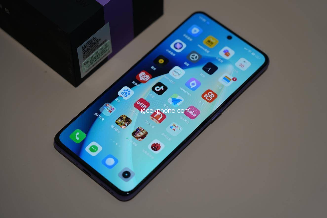 On the screen, Realme GT Neo 5 is equipped with a straight screen as standard this time. The specific parameters are a 6.74-inch 144Hz straight screen, which supports a 7-speed smart refresh rate, 2772×1240 resolution, 1.07 billion colors, 1400nit peak brightness, 100 P3 Wide color gamut, 93.69% screen-to-body ratio, 2.31mm ultra-narrow chin, 2160Hz ultra-high frequency PWM dimming, supports sunlight screen, 8196-level dimming, and eye protection mode.