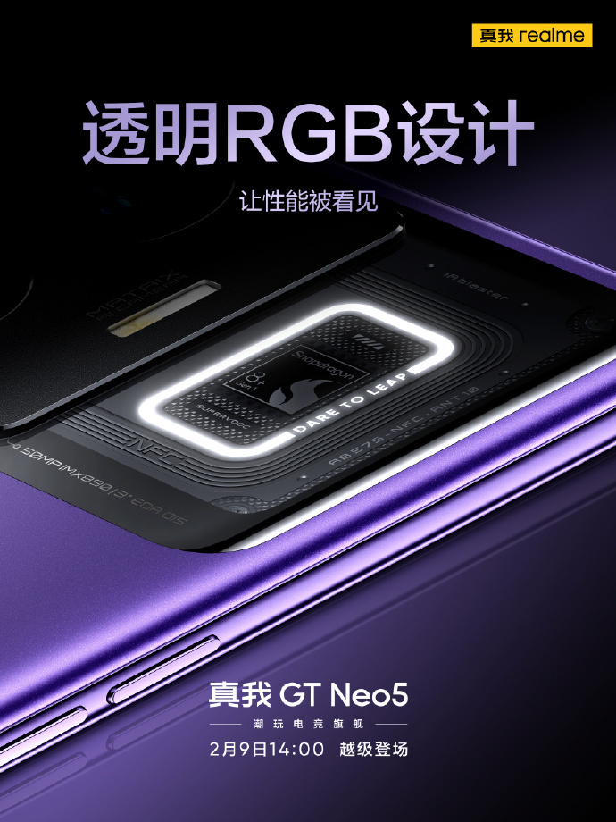 Realme GT Neo5 will be officially released at 14:00 on February 9th, which is called “tide play esports flagship” and will be the first mass production 240W second charge. Today, the official release of the real photos of the new machine.