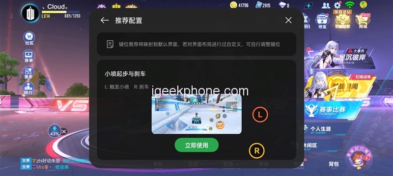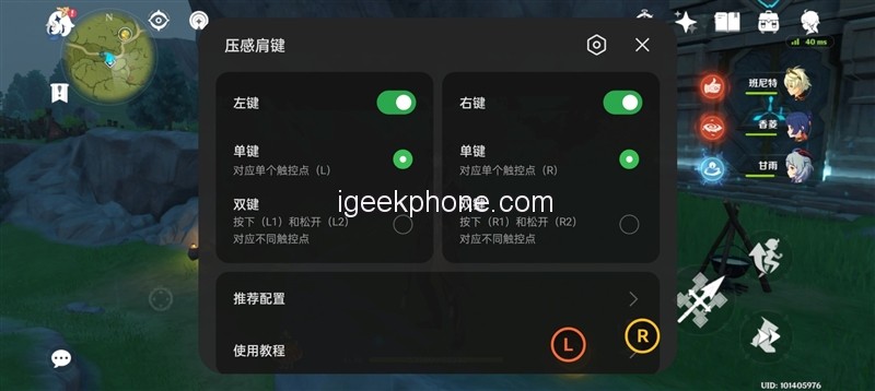 The pressure-sensitive shoulder key also supports a one-click recommendation scenario definition. Existing games support Peace Elite, King of Glory, QQ Speed, League of Legends, and Genshin Impact. Just enter the recommended configuration page, and the applicable key position scheme that matches the game can be automatically set.