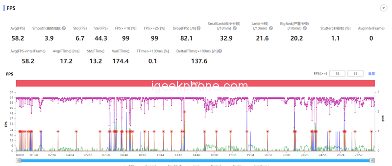From the monitoring data of these 20 minutes, except for the fluctuation caused by map loading, in the case of fewer monsters or only running maps, it can be maintained at about 60 frames, and the average frame rate can reach 58.2 frames, which is also close to full frame.
