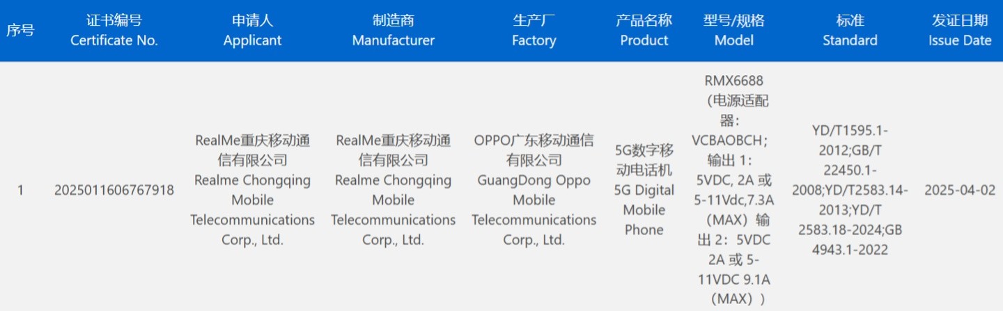 Igeekphone news on April 4th, a model of RMX6688 realme new machine passed the domestic 3C certification on April 2nd, support 100W fast charge, is expected to be released this month the realme GT7 mobile phone.