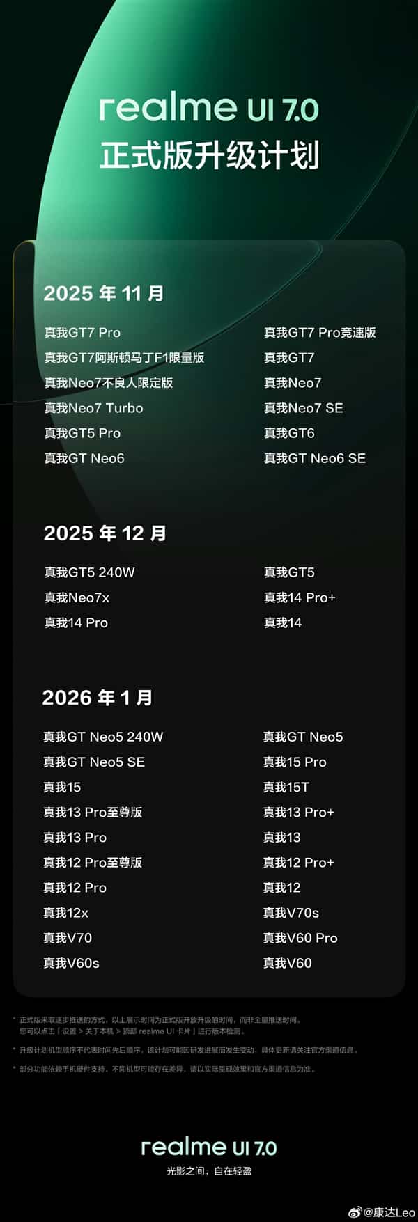 Igeekphone News, October 15th: This afternoon, Xu Qi, the president of realme China, announced the official upgrade plan for realme UI 7.0. The upcoming Realme GT8 Pro will be the first to be equipped with the brand-new realme UI 7.0 system. The following is the adaptation plan for older models.