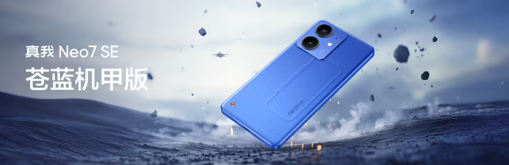 According to reports, realme Neo7 SE mobile phone provides “pale blue Mech version” & “White wing God of War” & “dark armored iron Ride” three colors. Among them, “pale blue Mecha version” color matching adopts fuselage 3D micro convex mecha texture, 3D engraving fine lines, faith nails, power key color contrast design. At the same time, the new machine also has a four-curved rear cover of equal depth, which can provide a micro arc and surface transition.