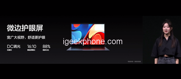 In terms of screen, the Realme NotebookAir is equipped with a micro-edge eye protection screen, with a screen ratio of 88%, a 16:10 ratio, and supports DC dimming for eye protection.