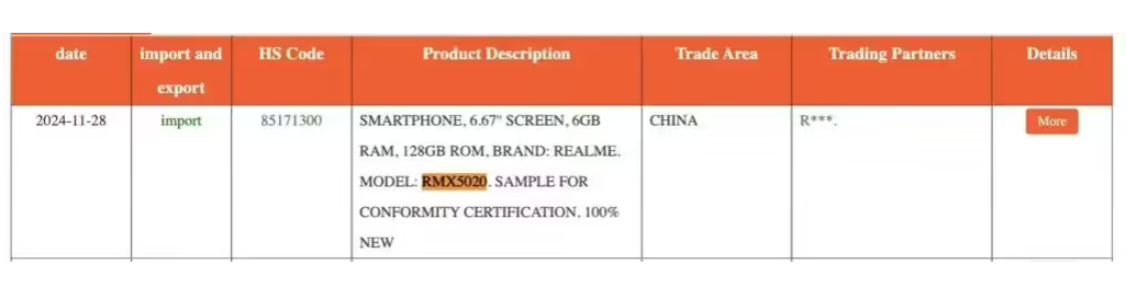 According to the NBD listing, the RMX5020 will feature a large 6.67-inch screen and the phone measures 165.69 x 76.22 x 7.99mm. In addition, the machine is expected to offer 128GB of storage and 6GB of running memory, enough for everyday applications and light multitasking or gaming needs.