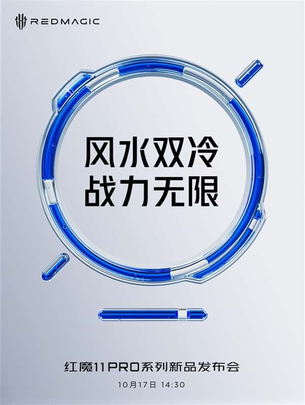 The official Weibo account of Red Magic Gaming Phone has officially announced that a new product launch event for the Red Magic 11 Pro series will be held at 14:30 on October 17th. In line with the official promotional slogan “Dual Cooling by wind and Water, unlimited combat power”, and the exposed heat dissipation configuration information, it indicates that the new generation of gaming phones will achieve a major breakthrough in heat dissipation performance.