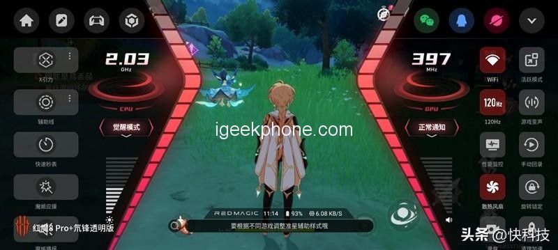 During the game, we turned on the exclusive awakening mode of the Red Magic game phone, which can maximize the full performance of the CPU and GPU, and at the same time observe the real-time calling frequency of the CPU and GPU in real-time.