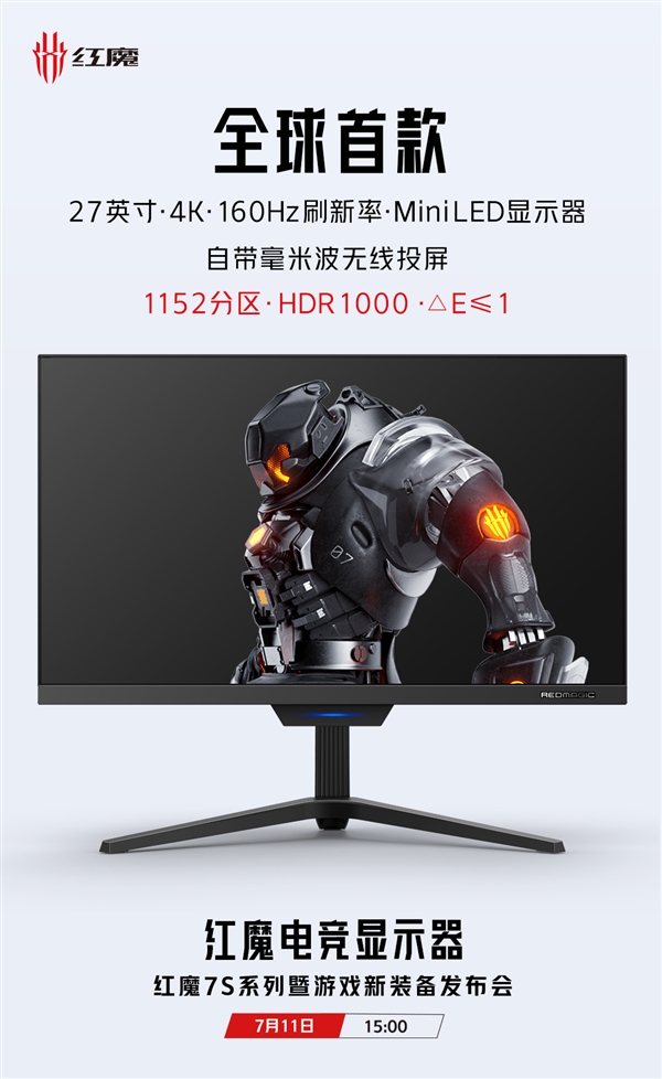 Today, Red Magic preheated Red Magic universe new equipment — Red Magic e-sports display, the display size of 27 inches, using Mini LED backlight, 4K resolution, supporting 160Hz high brush, such a top configuration is the world’s first one.
