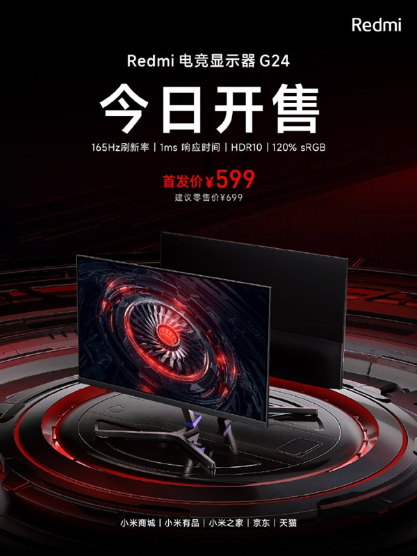 The Redmi e-sports monitor G24 went on sale today with a suggested retail price of 699 yuan, and the starting price is only 599 yuan.
