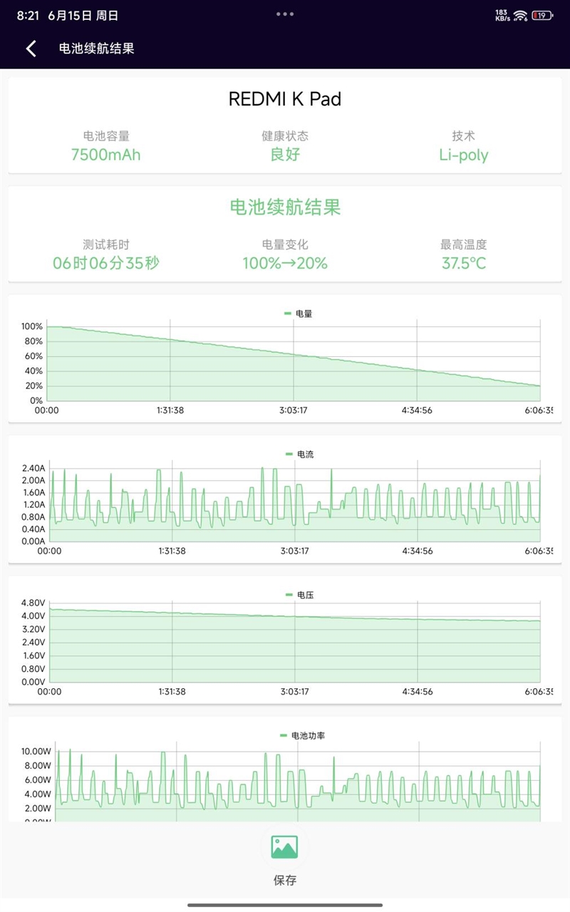 Under these settings, the REDMI K Pad operated continuously for 6 hours and 6 minutes before dropping from a full charge to 20%. This data suggests an overall battery life of over 7.5 hours under mixed-use conditions.
