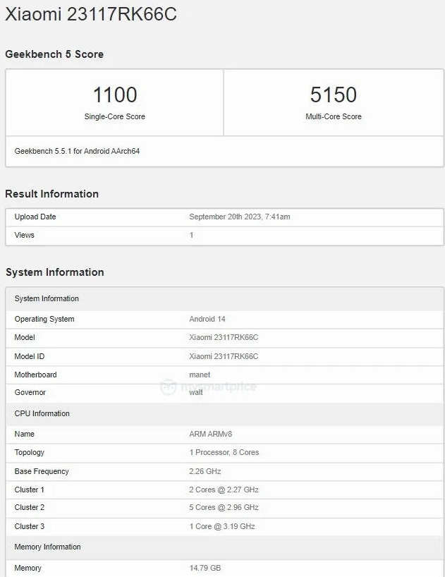 This latest test machine bears the model number 23117RK66C and boasts a substantial 24GB of memory. It is anticipated that the production model will also offer a variant with 24GB of memory.