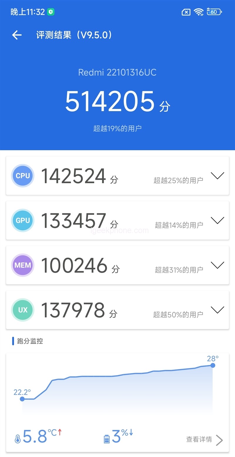 How is the performance of this set of hardware specifications, let’s take a look at the performance of the benchmark test. The room temperature AnTuTu evaluation score easily exceeded 500,000, slightly ahead of the Redmi Note 11 Pro, and the 3DMark cycle test stability was 99.1%, and it can stably output high performance for a long time.