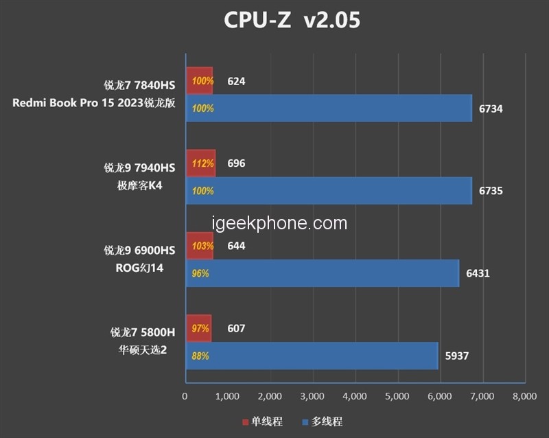 Compared with the Gemoco K4 mini machine that uses the Ryzen 9 7940HS, the RedmiBook Pro 15 2023 Ryzen Edition has a higher performance release. The 54W Ryzen 7 7840HS is 2% stronger than the 45W Ryzen 9 7940HS.