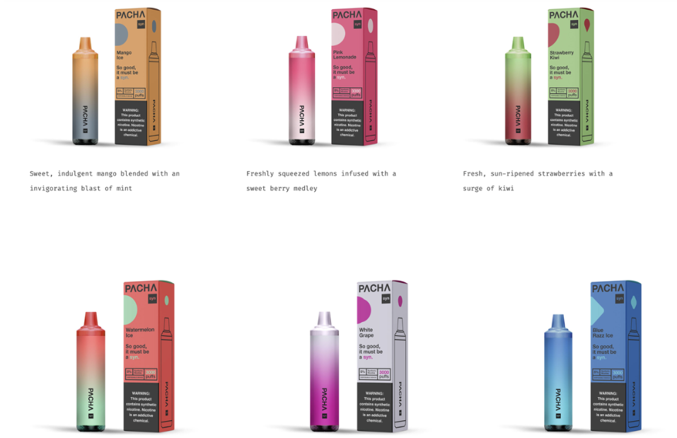 On the official website of the PACHA brand, the Pacha Syn 3000 series showcases a total of 8 flavors of SKUs. However, among the product list submitted by Charlie’s to PMTA, there are 11 flavors.