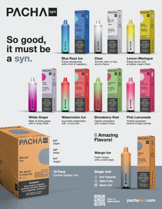 At present, Pacha Syn 3000 is mainly targeted at the US market and is available for sale on the websites of major e-cigarette distributors in the United States. The product price is around $9.97.