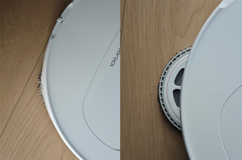Now, let’s test the cleaning capabilities of the mechanical arms, focusing on the edges of the wall. As the Roborock mopping robot P10S Pro approaches a wall, it extends its arms to efficiently clear out debris. Achieving a 100% corner coverage cleaning rate and a 98.8% corner mopping coverage rate at a distance of 0, it ensures thorough cleaning in corners.