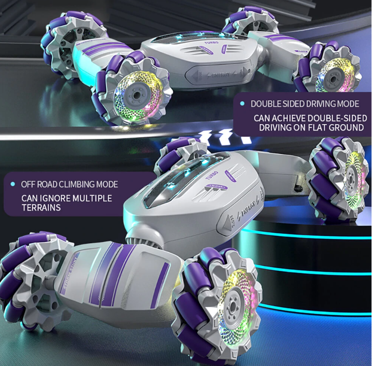 4. Dual-sided high-speed driving: The car is designed with dual-sided driving capabilities, allowing it to perform high-speed driving, climbing, drifting, and stunt maneuvers for added excitement.