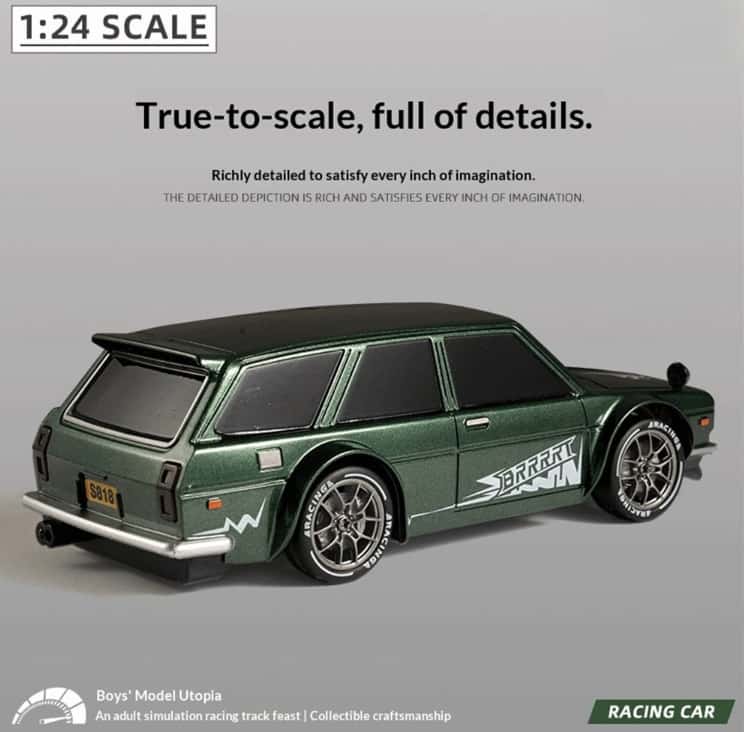 The S818 immediately captures attention with its charming retro travel-themed body, reminiscent of classic touring cars but with a modern, sporty twist. Despite its miniaturized scale, the build quality is robust. It features a durable 4WD (four-wheel-drive) chassis and an independent suspension system that handles high-speed turns and drifts with remarkable stability. The integrated LED headlights and taillights aren’t merely decorative; they illuminate your path for low-light racing and add a stunning visual effect during drifts, enhancing the immersive experience.
