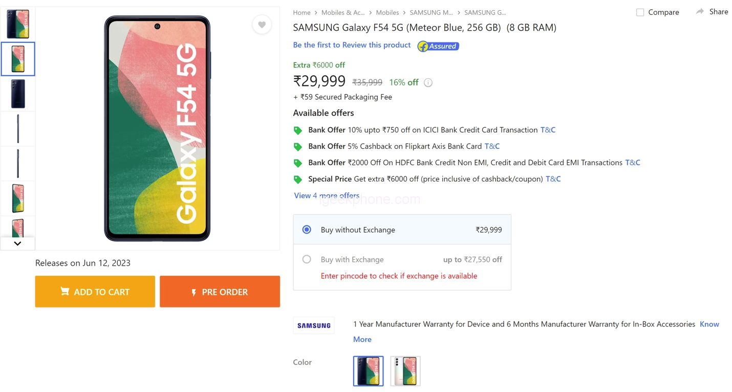 It’s worth mentioning that there are a couple of differences between the Galaxy F54 5G and its predecessor, the Galaxy A54 5G. While the Samsung Galaxy A54 5G featured a glass back cover and boasted IP67 dust and water resistance, the Galaxy F54 5G opts for a plastic back cover and does not offer the same level of dust and water resistance. However, these changes contribute to a lower price point, making the Galaxy F54 5G a more budget-friendly option for consumers. The phone is available in two attractive color options: Meteor Blue and Stardust Silver, giving customers a choice to suit their personal preferences.