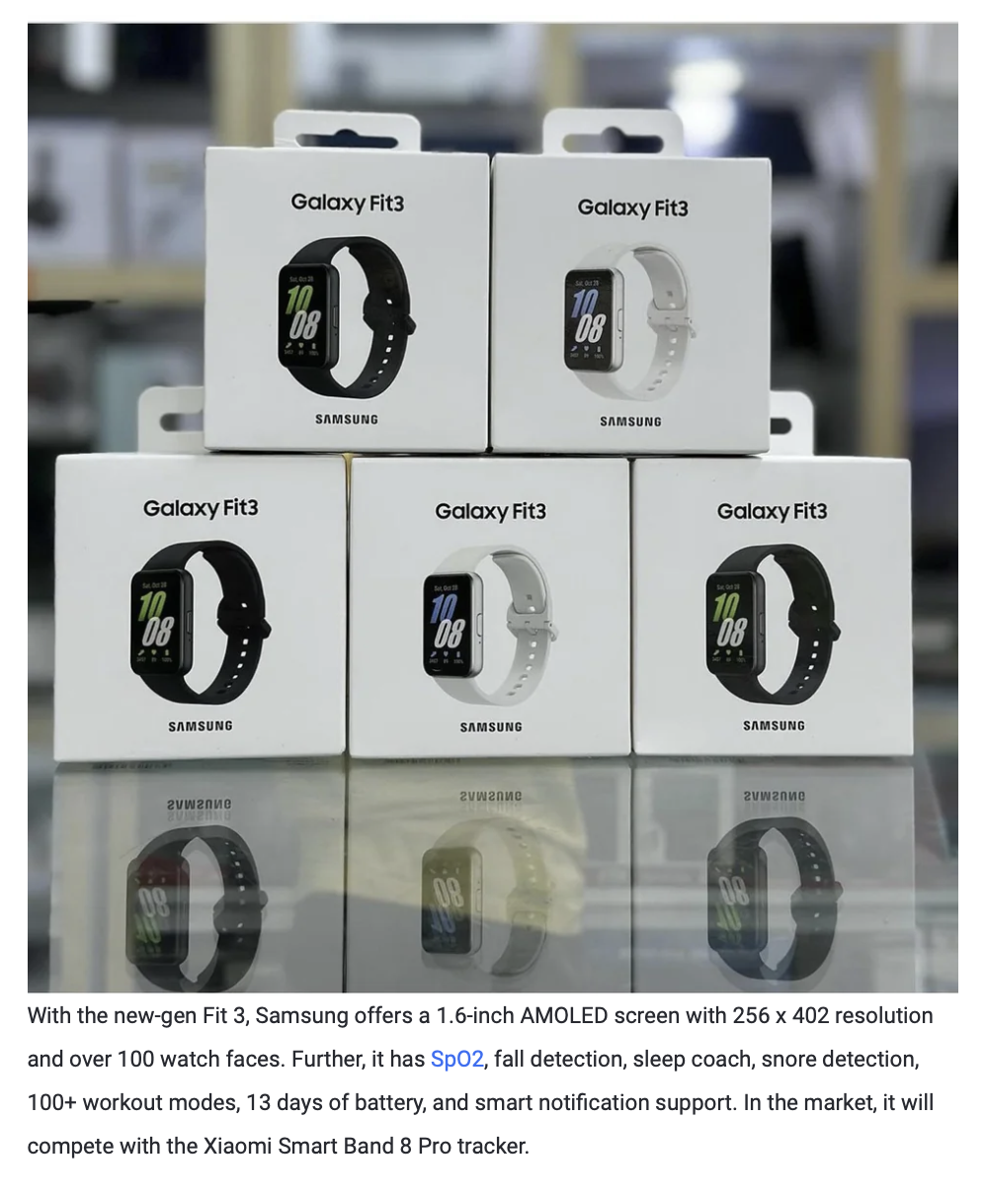 According to foreign media samsungcommunity reports, a user named Ahmed found the packaging box of the Galaxy Fit3 bracelet in a store in Dar es Salaam, Tanzania, which shows that the bracelet has black and silver two colors, priced at 250,000 Tanzanian dollars (Igeekphone note: About 705 yuan).