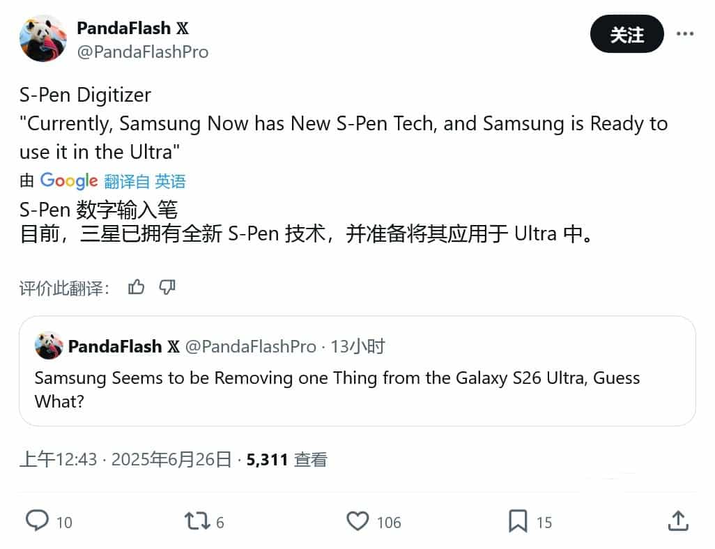 Igeekphone News, June 26th: Source @PandaFlashPro released a series of tweets on the X platform today (June 26th), revealing that both the Samsung Galaxy S26 Ultra and the Galaxy Z Fold7 phones adopt the brand-new S Pen technology.