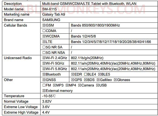 Igeekphone August 8 news, according to foreign technology media tabletmonkeys reported that the model of “SM-X115” tablet computer has passed the Wi-Fi Alliance and FCC certification, is estimated to be on sale, the name of the Galaxy Tab A9.