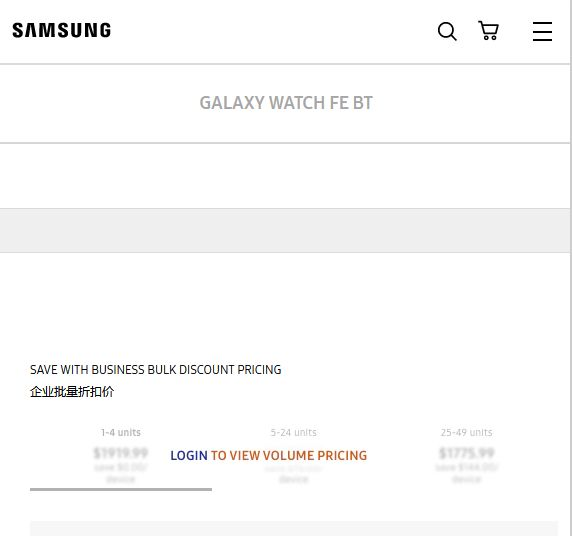 As you can see from the screenshot above, the webpage appears to be intended for corporate customers who want to buy the Galaxy Watch FE in bulk. Samsung appears to have posted the page by accident. The page also mentioned the price of bulk ordering, but it was covered up, and the previous message was $199 (Igeekphone note: Currently about 1,443 yuan).