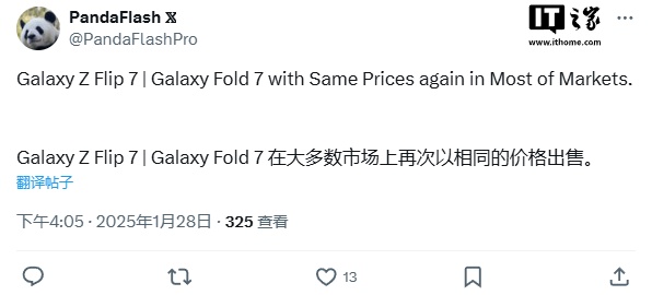 Igeekphone news on January 29, the whistleblower @PandaFlashPro has been publishing information about the Samsung Galaxy Z Flip 7 and Fold 7 folding screen phones since January 25, and he has already had a trumpet blocked for this.
