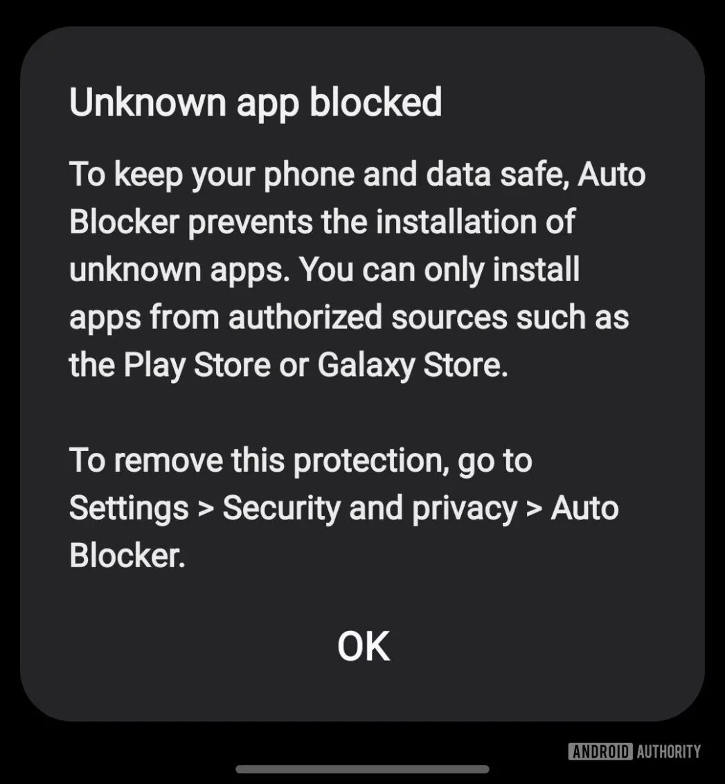 Samsung debuted the Auto Blocker feature in One UI 6.0 to completely block the installation of unauthorized apps, even if the app has been granted REQUEST_INSTALL_PACKAGES permissions.