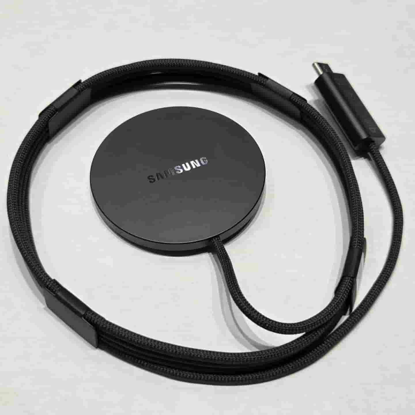 In terms of appearance, according to the exposed icons, this charger has a USB Type-C interface at one end and a circular magnetic wireless charging pad at the other end. The connecting cable is made of nylon material. This product is expected to be available in only one color when it goes on the market. Samsung officially suggests that users pair it with a 45W USB PD charger.