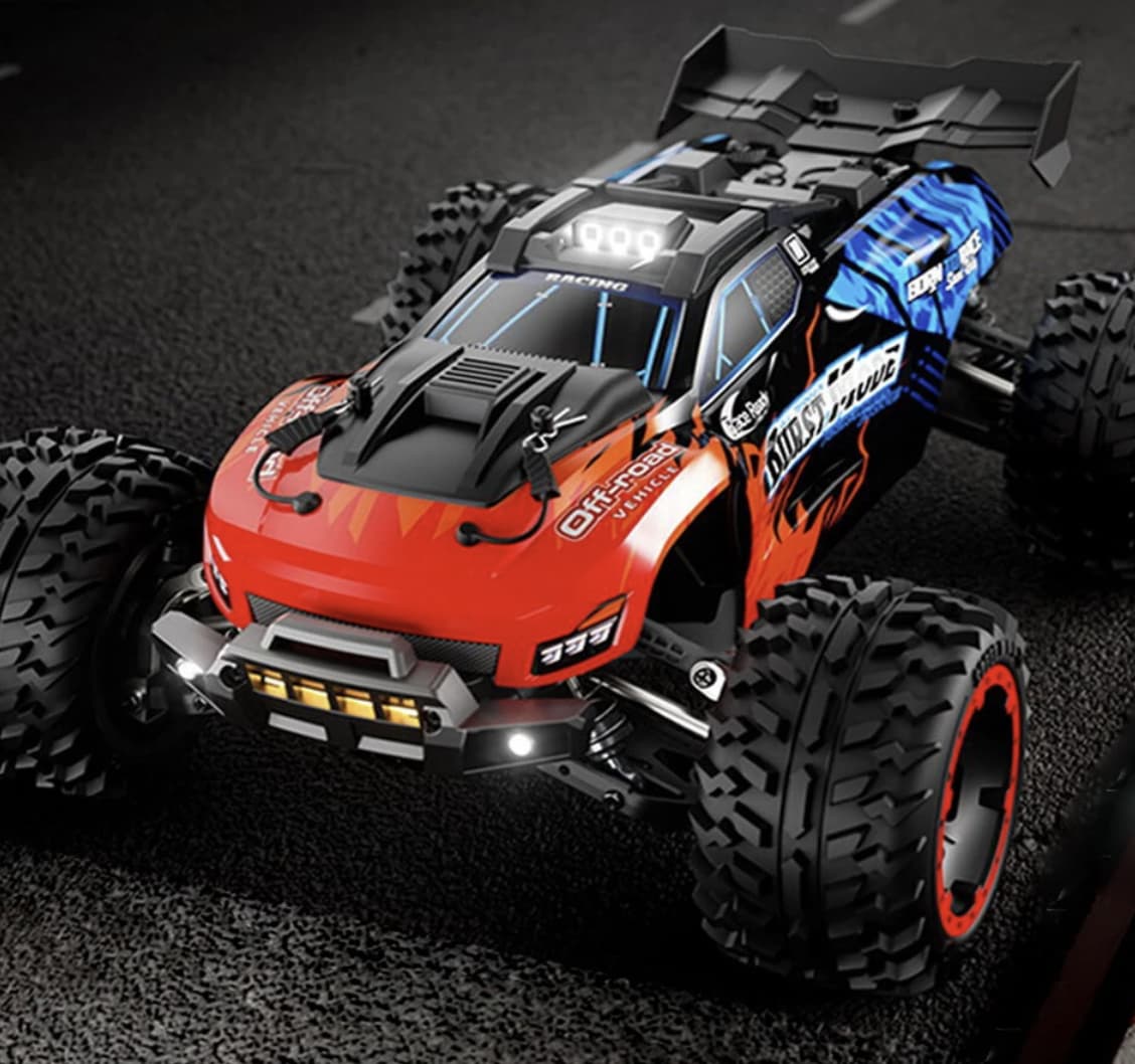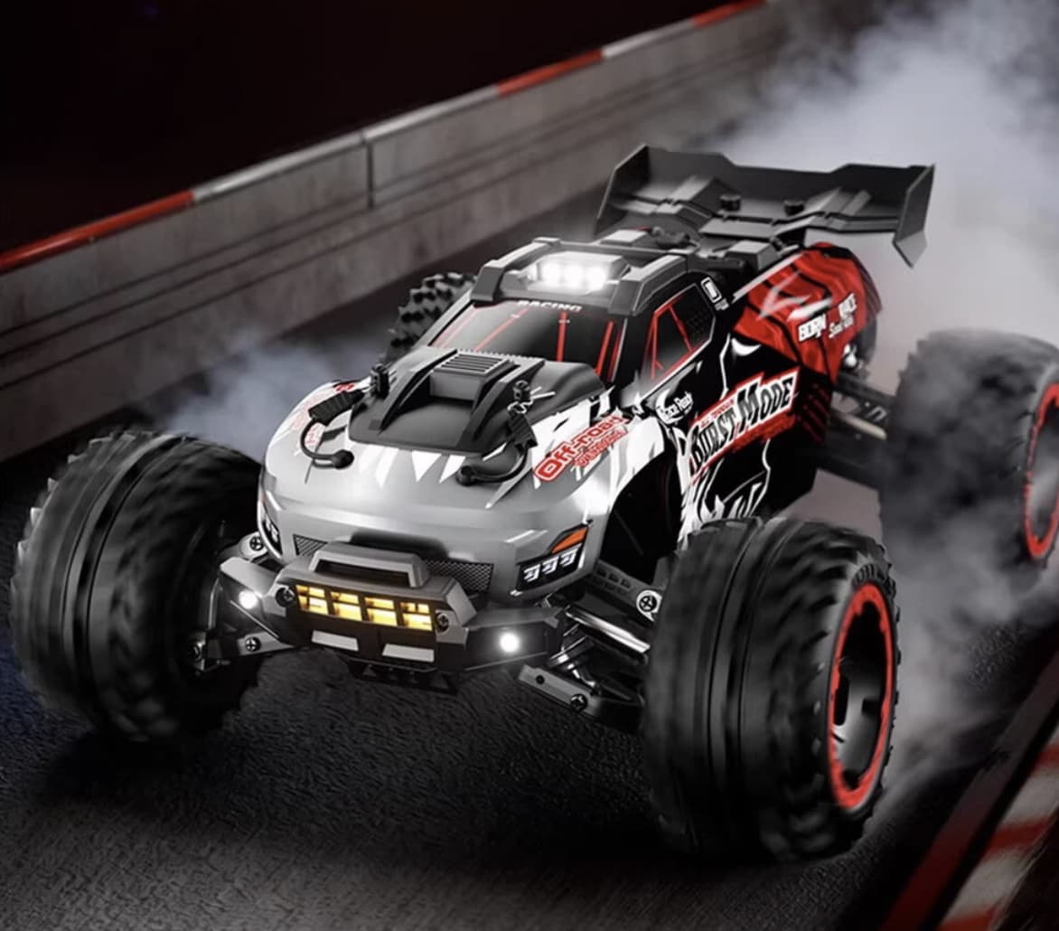 Made with high-quality materials, this RC car boasts a robust, shock-resistant body that helps protect it from crashes and harsh conditions. The four large wheels are equipped with deep treads, ensuring the car has a solid grip on all types of surfaces, even when the going gets tough.