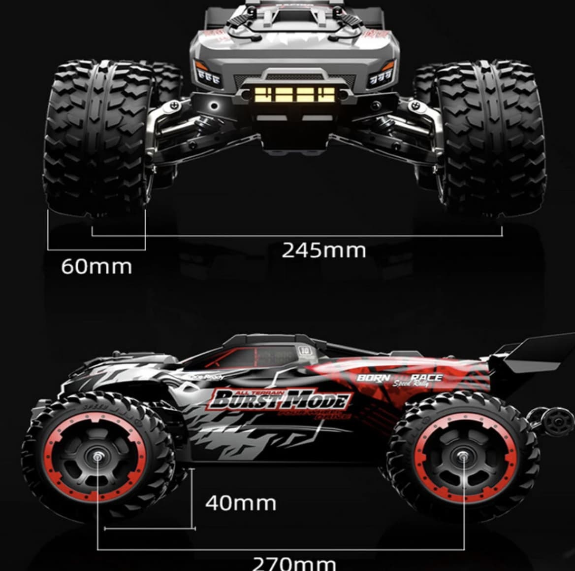 1. Powerful Performance: With a brushed motor, 4WD, and 40 km/h top speed, this truck offers thrilling power and speed on any terrain.