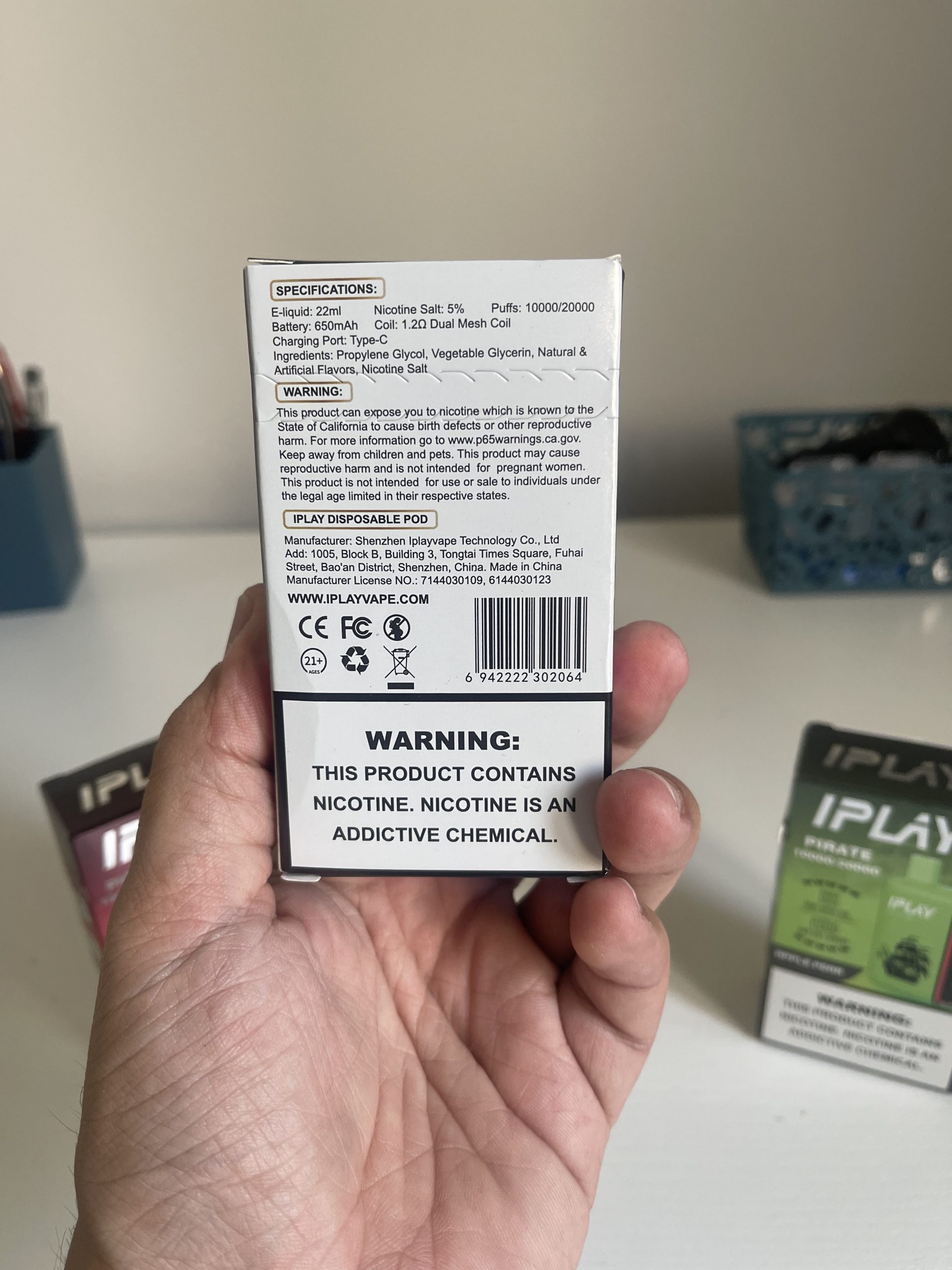 • 1 x iPlay Pirate 10000/20000 Disposable Vape Device